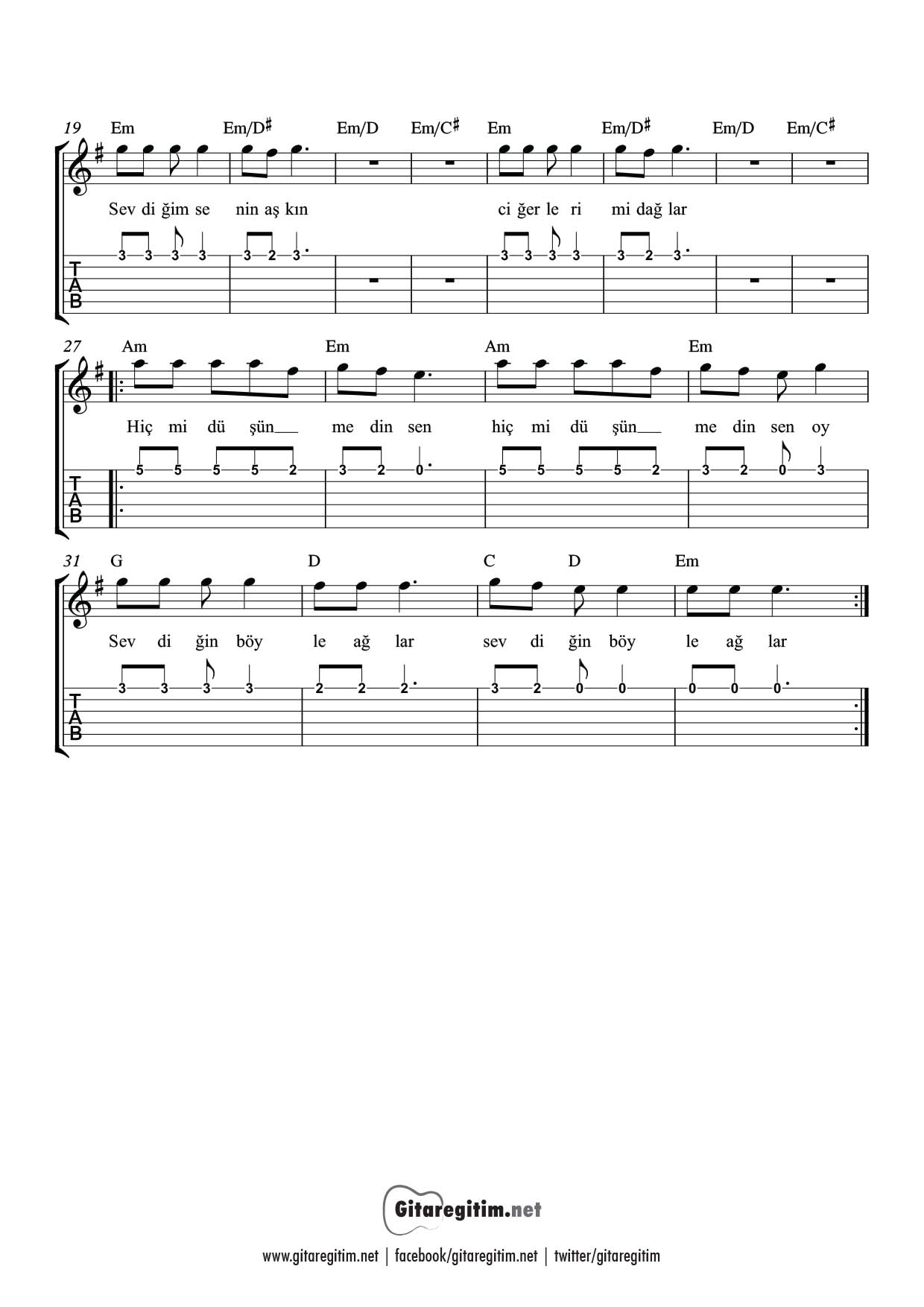 Koyverdun gittun beni oy. RE Mİ FA SOL SOL SOL SOL FA SOL FA Mİ RE HİÇ Mİ DÜŞÜNMEDUN SEN SOL SOL SOL SOL FA SOL FA Mİ RE HİÇ Mİ DÜŞÜNMEDUN SEN OY FA FA FA FA Mİ Mİ Mİ SEVDUĞUN BOYLE AĞLAR FA Mİ Mİ RE RE RE SEVDUĞUN BOYLE AĞLAR GELEVERA DERESİ Koyverdun Gittun Benu Notaları ve Tabları. Kimse almasun seni oy Kimse almasun seni.